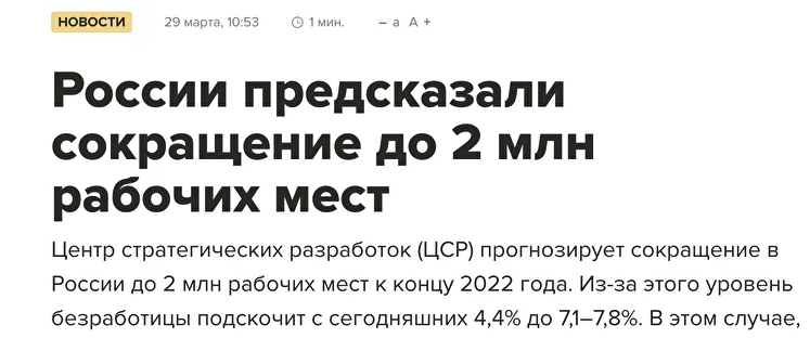 А больше всего меня пугает кризис - кучу людей поувольняли, а рабочих мест не прибавилось. Куда пойдут бывшие сотрудники ИКЕИ или Nike? Государственные источники заявляют, что